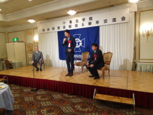 「仙台同窓会」総会並びに新年交流会開催のご案内2025.12.09 仙台同窓会では、下記の通り総会並びに新年交流会を開催いたします。 仙台市及び近隣にお住まい又は勤務されている同窓生の方は、是非お誘いあわせの上ご参加下さい。 【日時】 2026(令和8)年2月18日(水)18時30分から ※総会後に新年交流会を開催いたします 【場所】 仙台国際ホテル 仙台市青葉区中央4-6-1 電話 022-268-1111 【連絡先】 校友課 022-264-6468 【前回の様子】